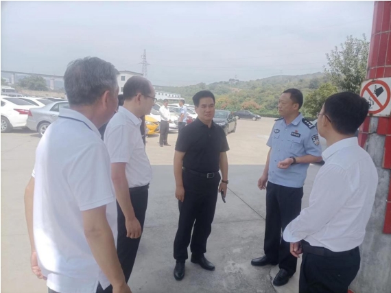 省安委會督導(dǎo)組成員省公安廳交管局匡衛(wèi)民(中)聽取現(xiàn)場匯報(bào)