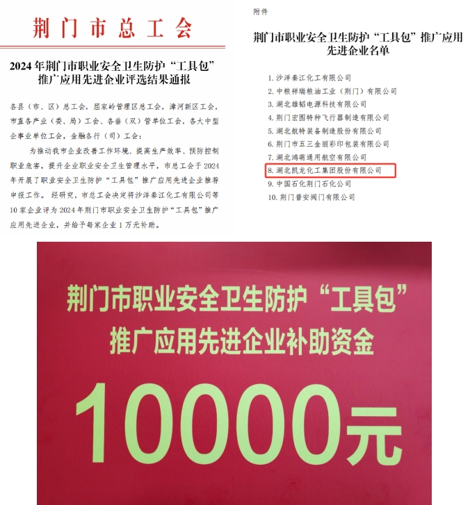 (通訊員 郭春梅)2024年 9月26日下午,荊門市總工會(huì)召開產(chǎn)業(yè)工人隊(duì)伍建設(shè)改革現(xiàn)場推進(jìn)會(huì),集團(tuán)公司被荊門市總工會(huì)授予“荊門市職業(yè)安全衛(wèi)生防護(hù)‘工具包’推廣應(yīng)用先進(jìn)企業(yè)”榮譽(yù)稱號(hào),并給予1萬元補(bǔ)助,現(xiàn)場進(jìn)行了隆重的頒獎(jiǎng)儀式。